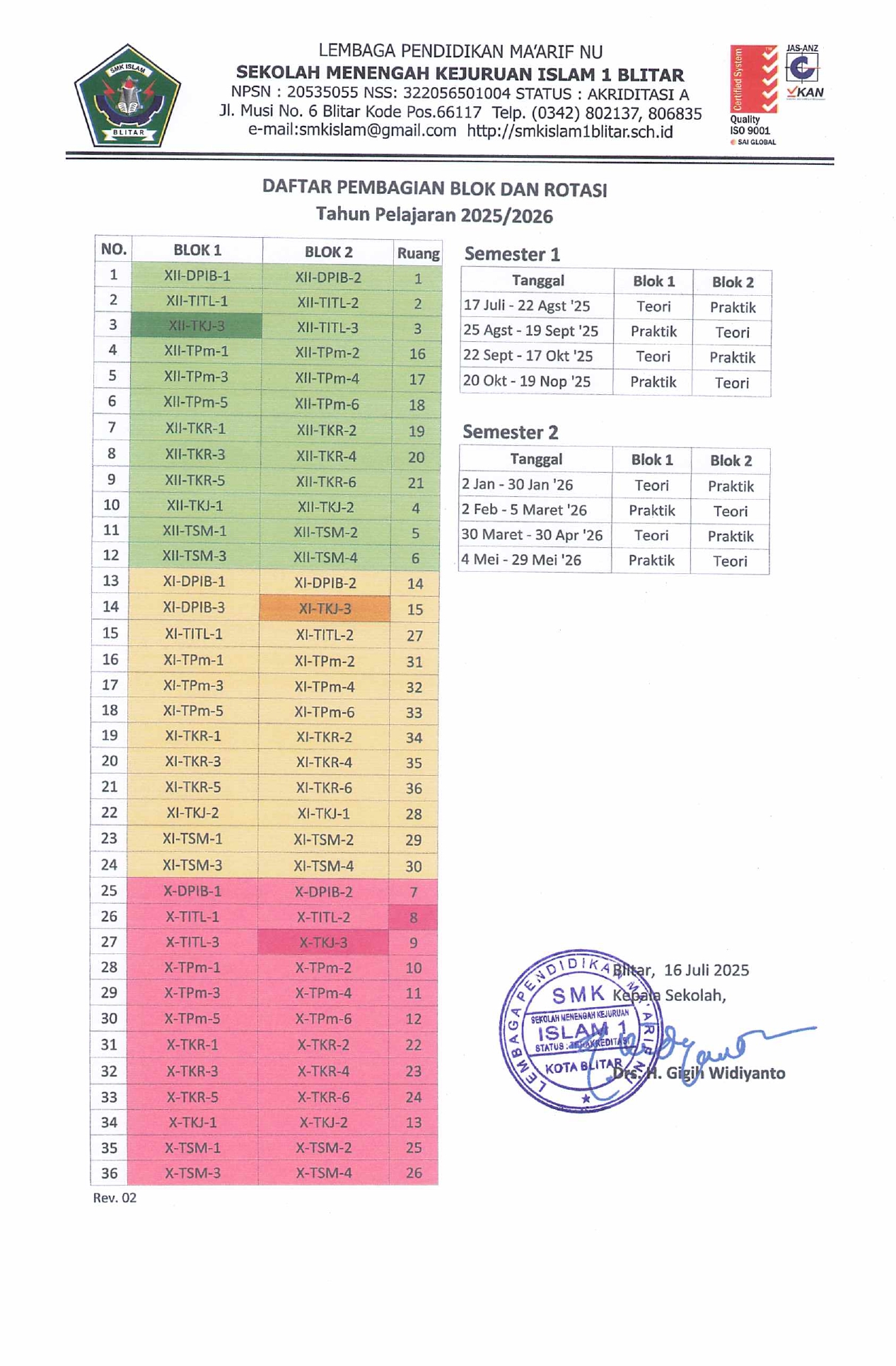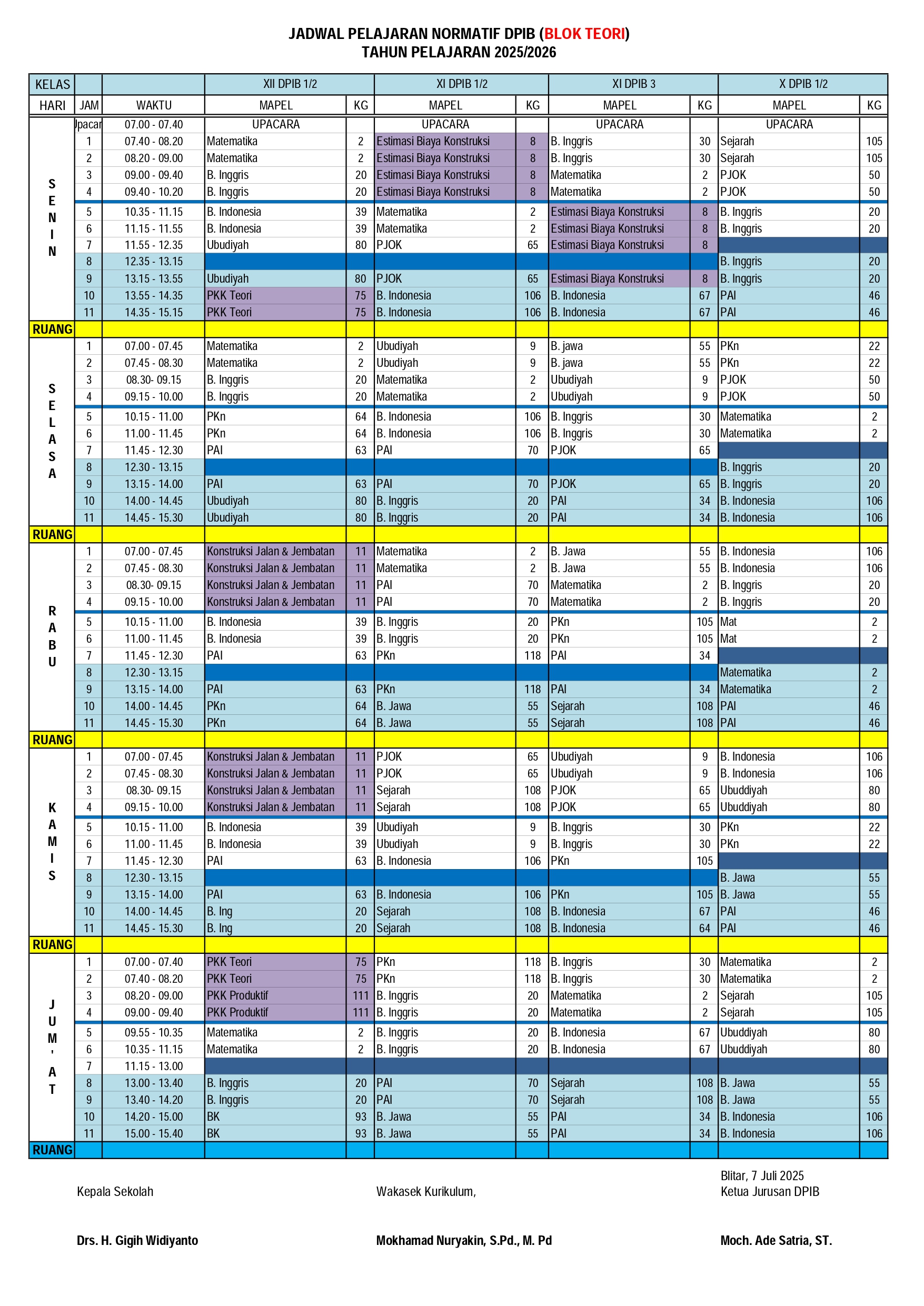 Jadwal Pelajaran Mapel Normatif Jurusan DPIB