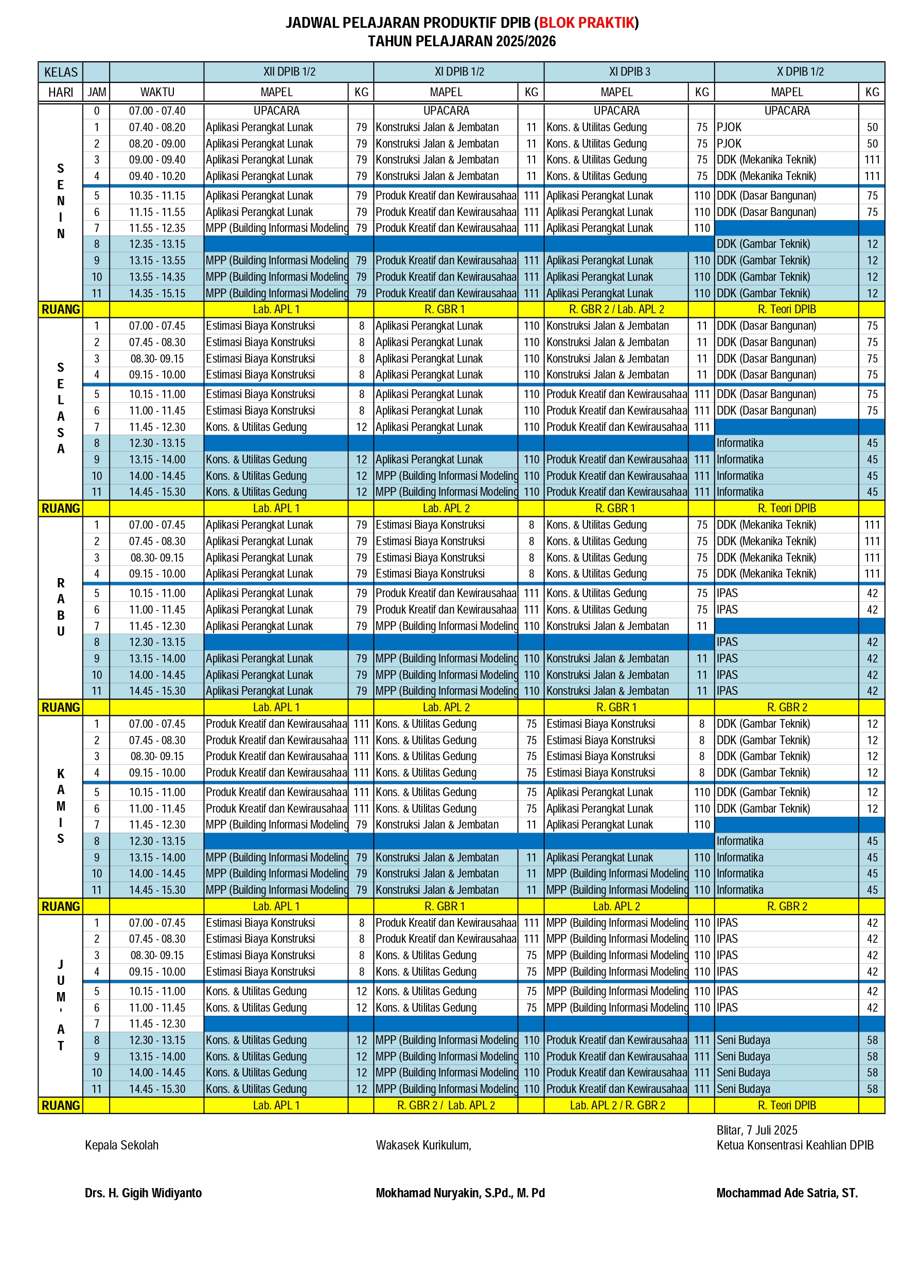Jadwal Pelajaran Mapel Produktif Jurusan DPIB